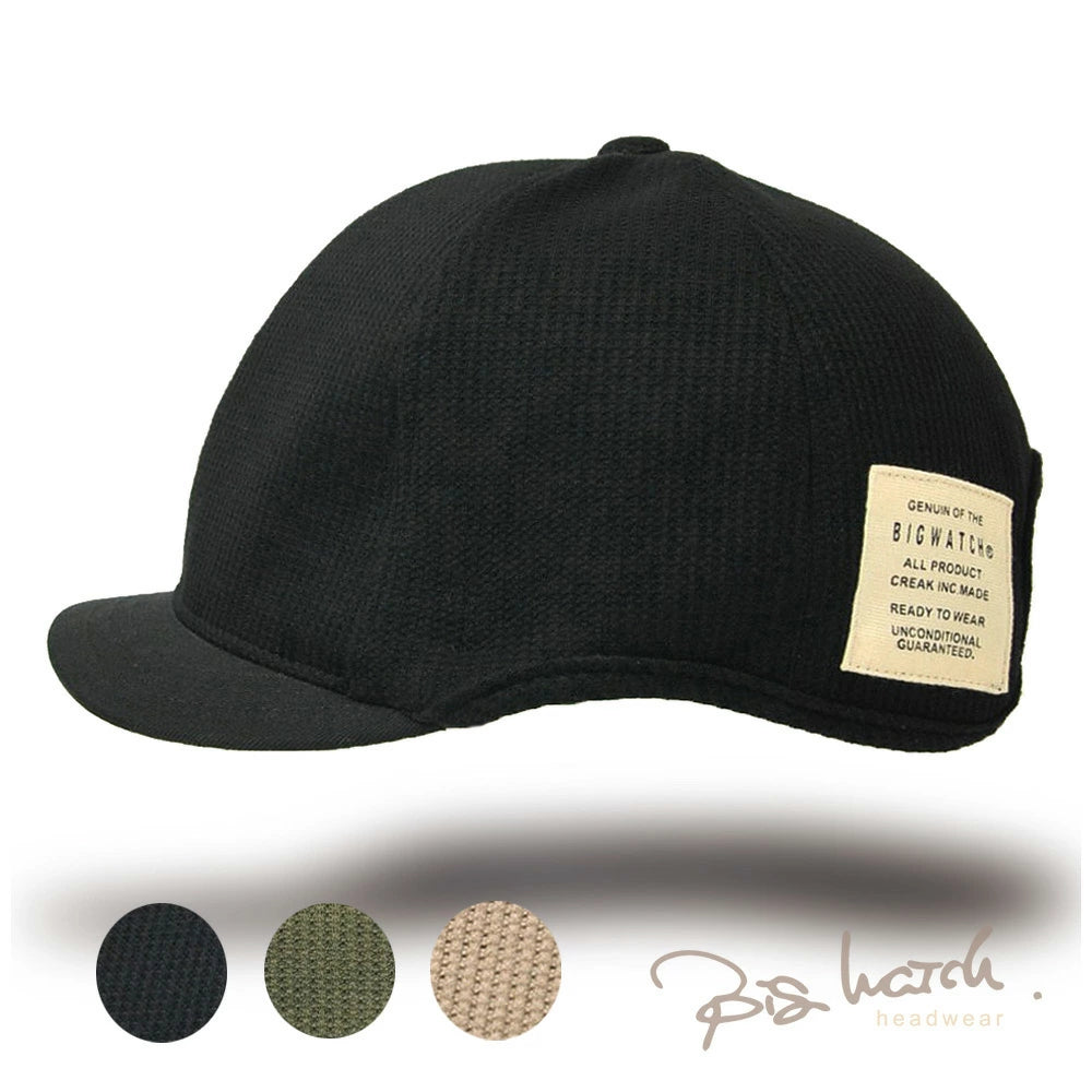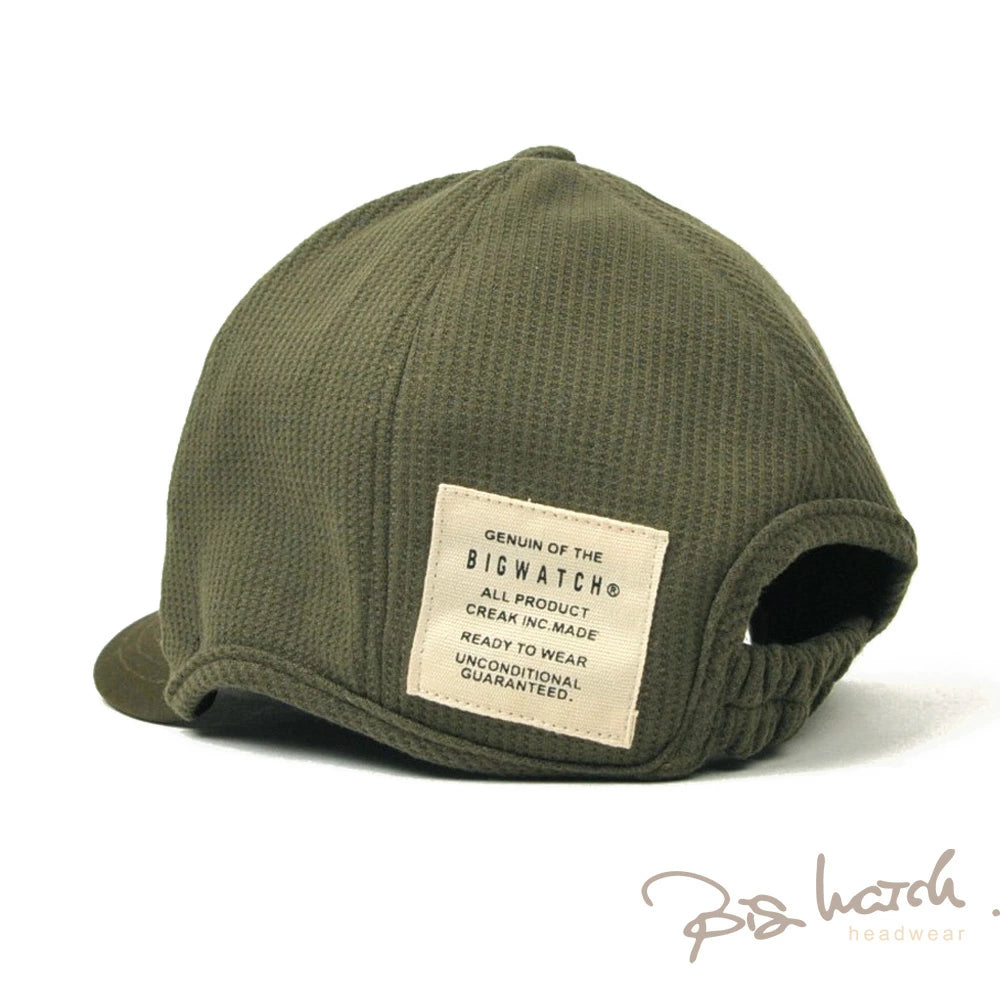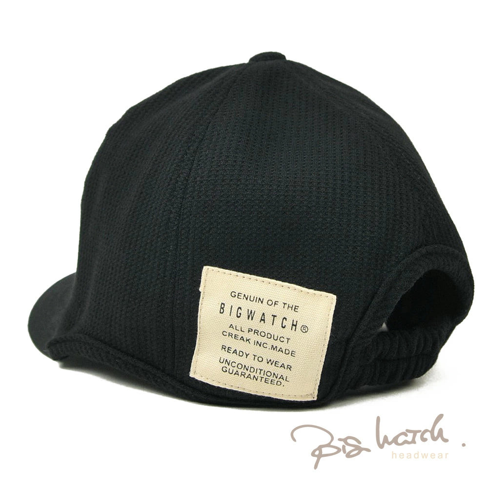サーマル生地を使用したアンパイアキャップBIGWATCHです! サーマル生地は、ワッフル上の小さな凹凸と肌触りの良さが特徴です。 大きいサイズでも耳が痛くならないイヤーラウンド加工。 後ろに被っても邪魔にならない短いツバもポイント! 今まで頭のサイズ等で似合うキャップが無かったという方や、芸能人のようにかなり深めにかぶりたい方にもおすすめです。 BIGWATCH正規品。ネーム付き。