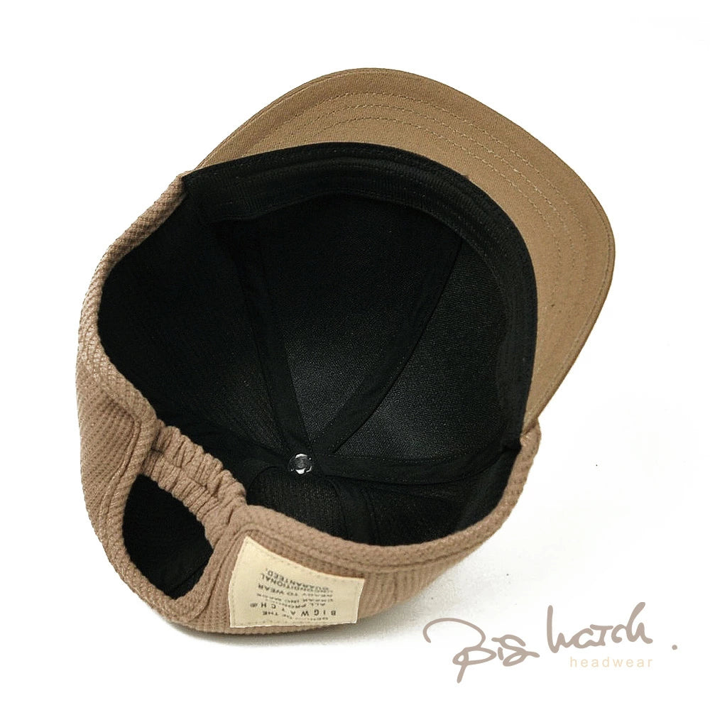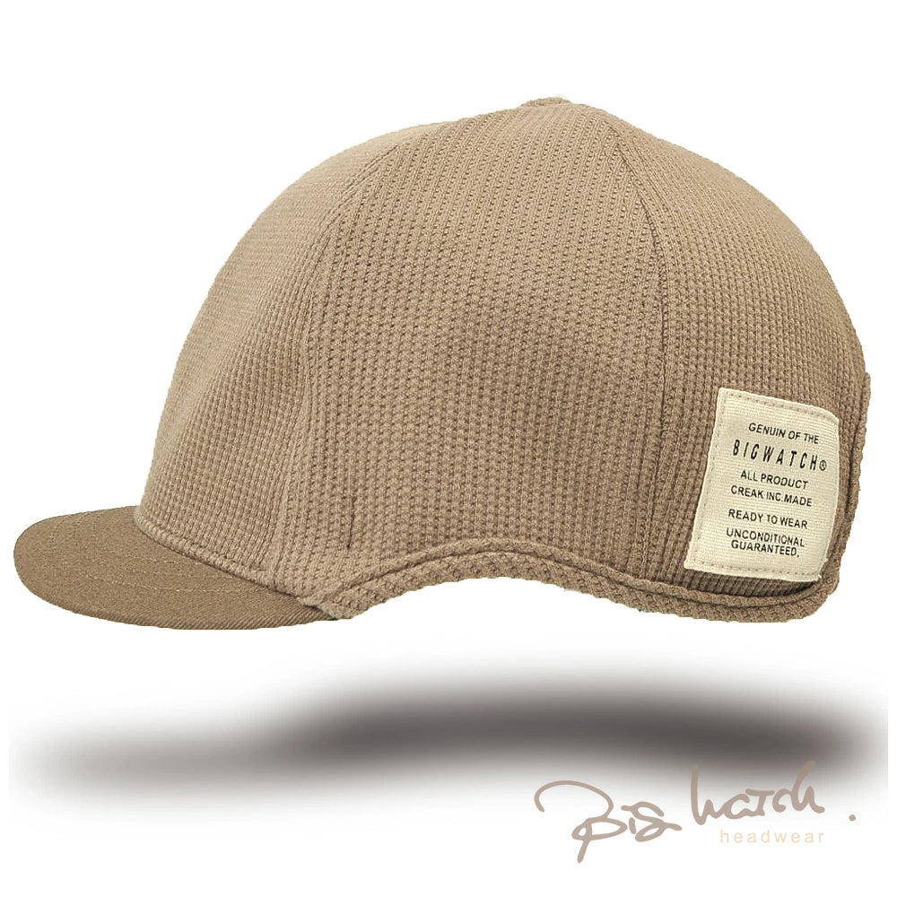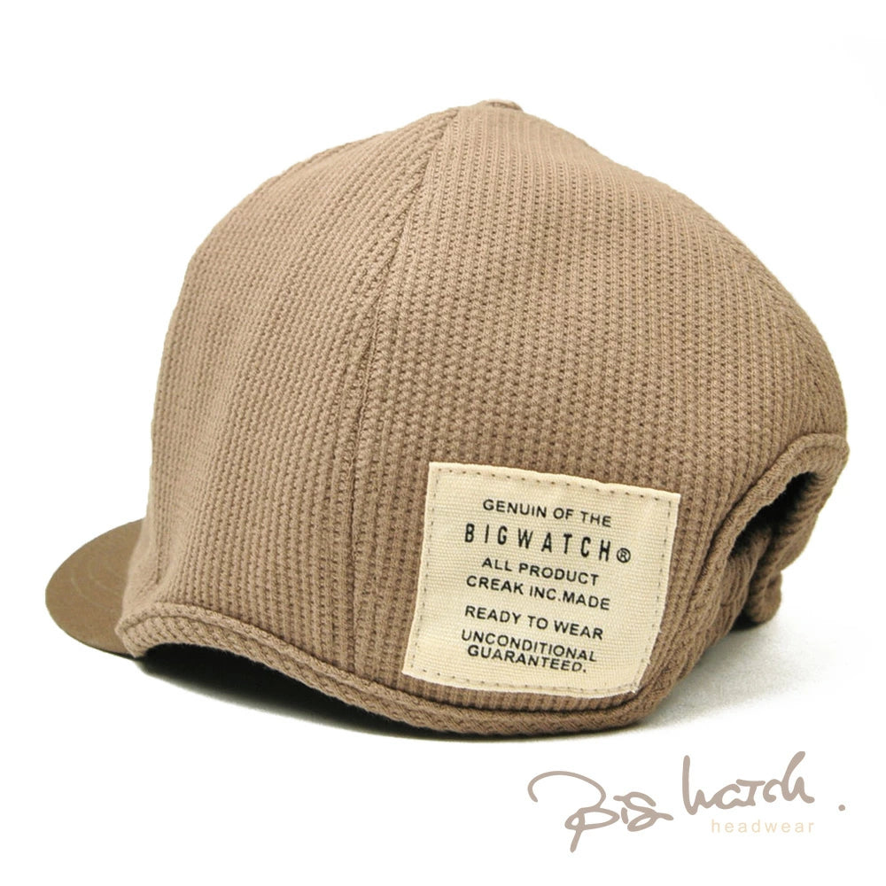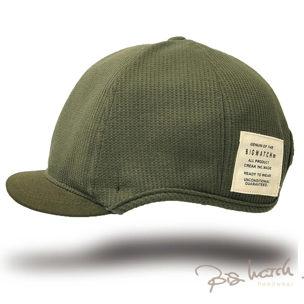 サーマル生地を使用したアンパイアキャップBIGWATCHです! サーマル生地は、ワッフル上の小さな凹凸と肌触りの良さが特徴です。 大きいサイズでも耳が痛くならないイヤーラウンド加工。 後ろに被っても邪魔にならない短いツバもポイント! 今まで頭のサイズ等で似合うキャップが無かったという方や、芸能人のようにかなり深めにかぶりたい方にもおすすめです。 BIGWATCH正規品。ネーム付き。