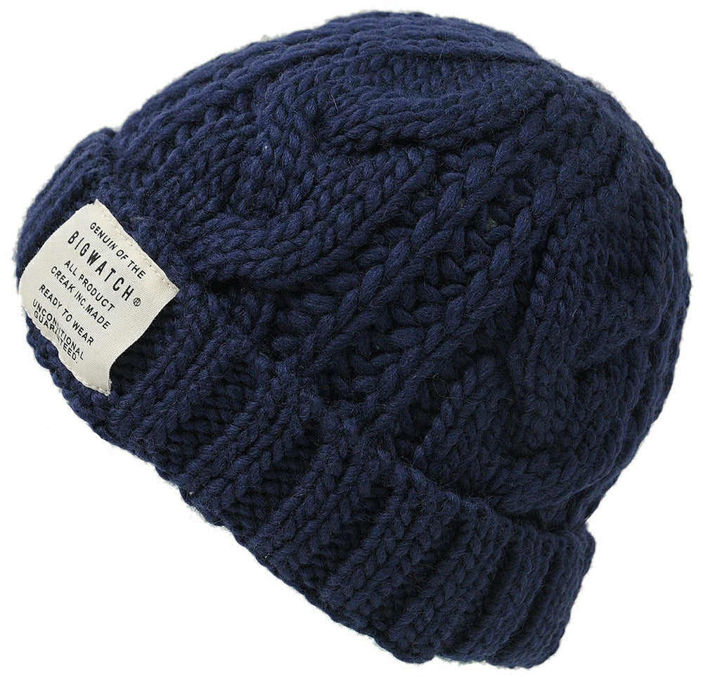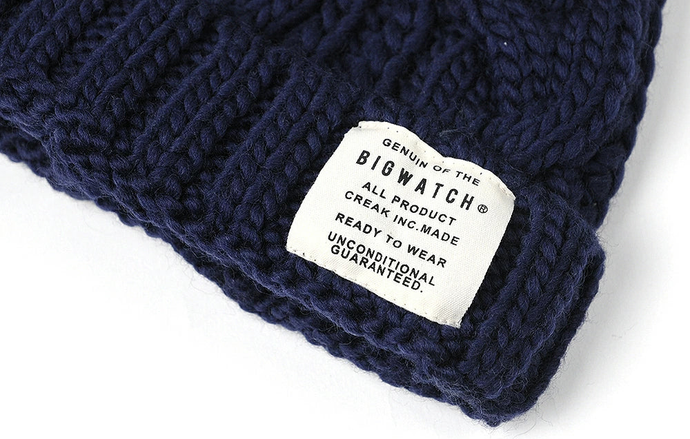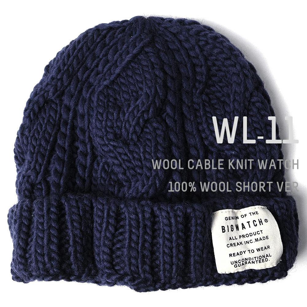 ウール ケーブル ニットキャップ BIGWATCH(Short Ver) ネイビー 紺 ビーニー ビッグサイズ ビッグワッチ ワッチキャップ ケーブル 防寒対策 W-11 春 秋 冬 帽子 大きいサイズ