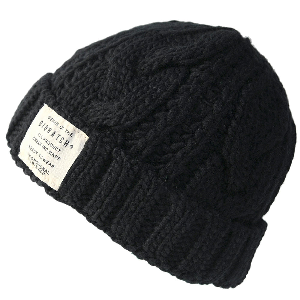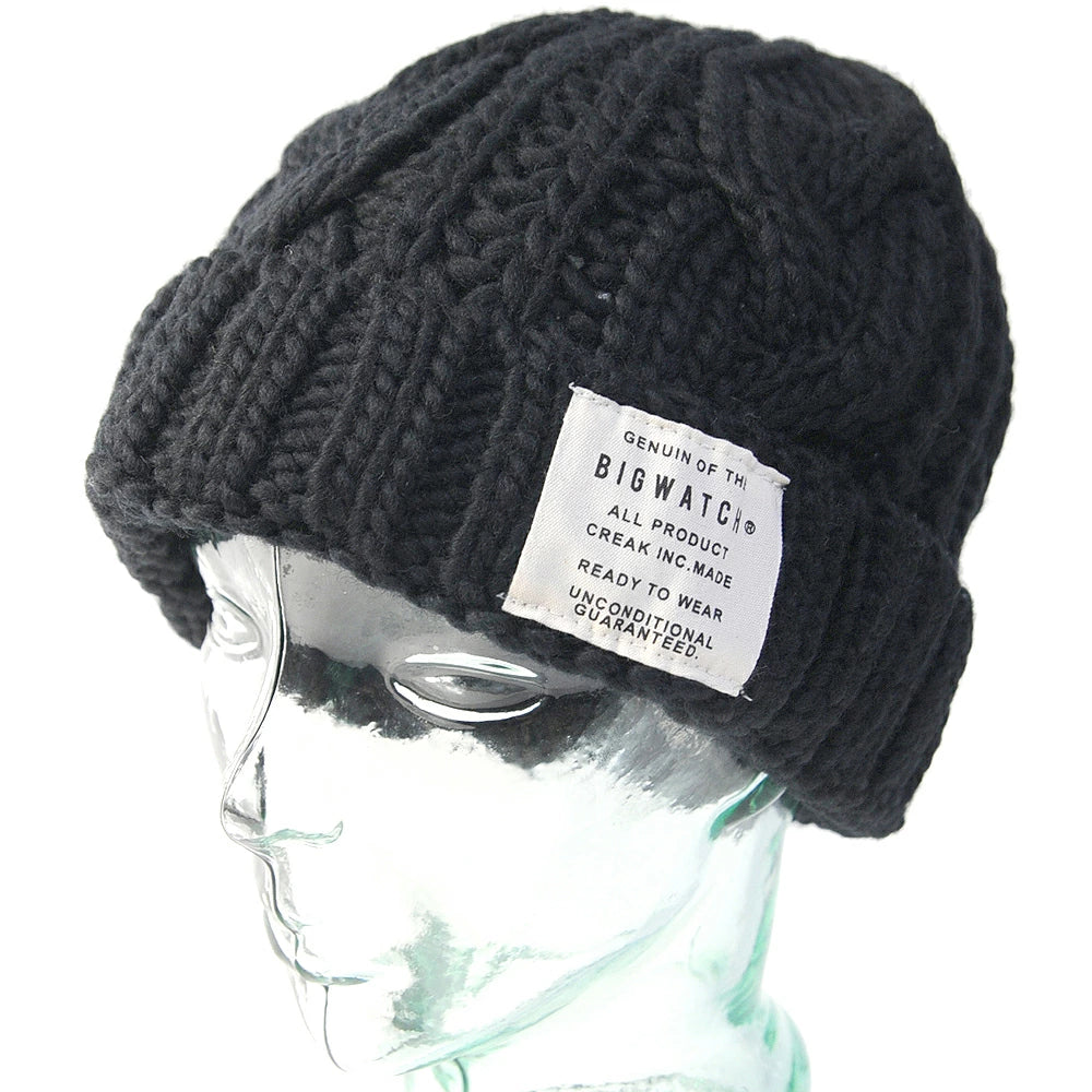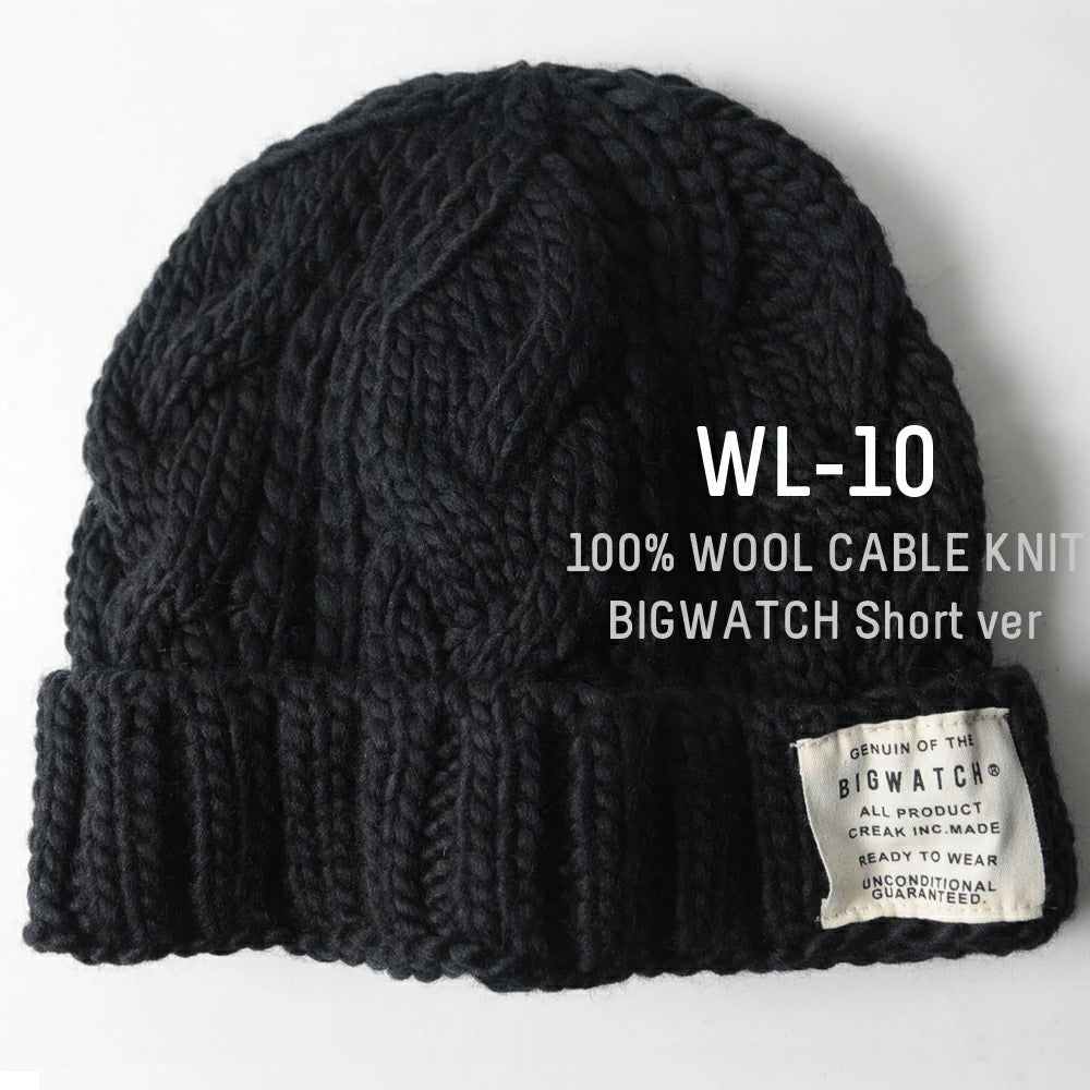 ウール ケーブル ニットキャップ BIGWATCH(Short Ver) 黒 ブラック ビーニー ビッグサイズ ビッグワッチ ワッチキャップ ケーブル 防寒対策 W-10 秋冬 帽子 大きいサイズ
