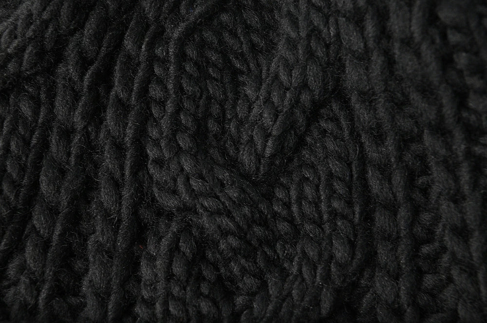 太いゲージと共にケーブル網による立体感と素材感。ルーズなシルエットを作りやすいのが特徴です。