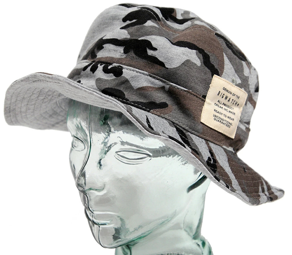 カモ柄 スウェット サファリ ハット MIXグレーカモ 迷彩柄 サファリ バケットハット ビッグワッチ HA-19 春夏