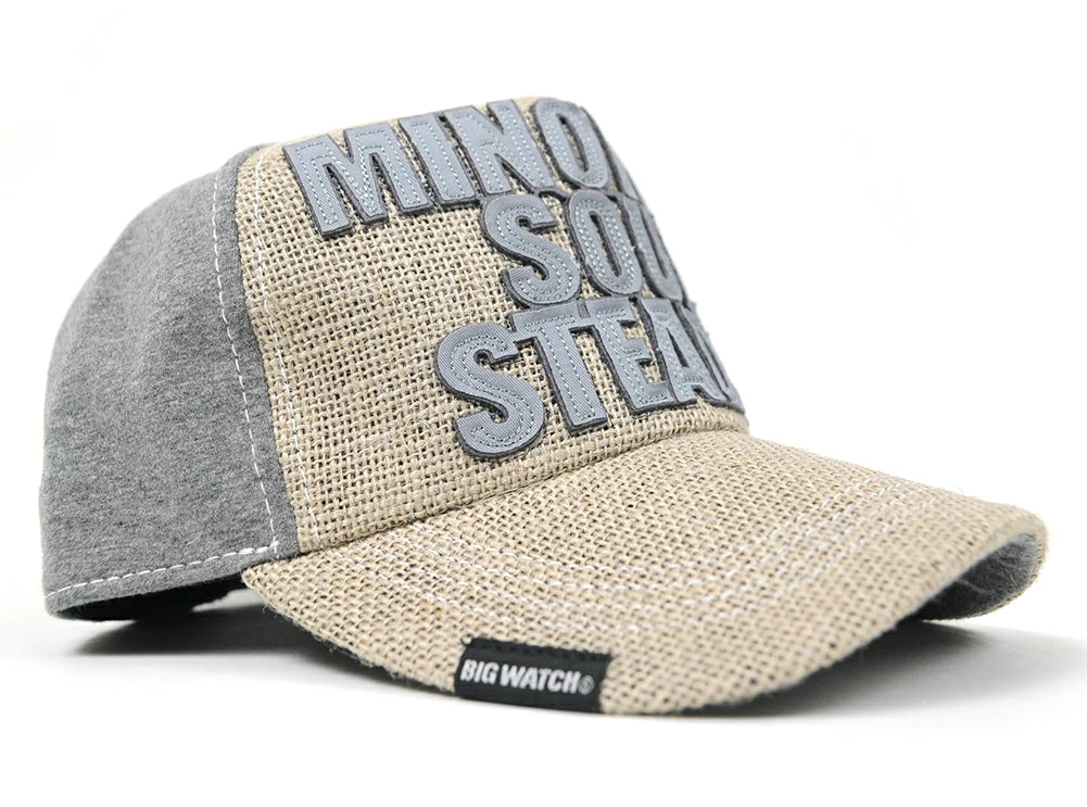 定番人気のヘンプCAPBIGWATCHをベースに、フロントのメッセージ部分をダメージワッペン仕様、後ろ部分にコットン使用したモデル。