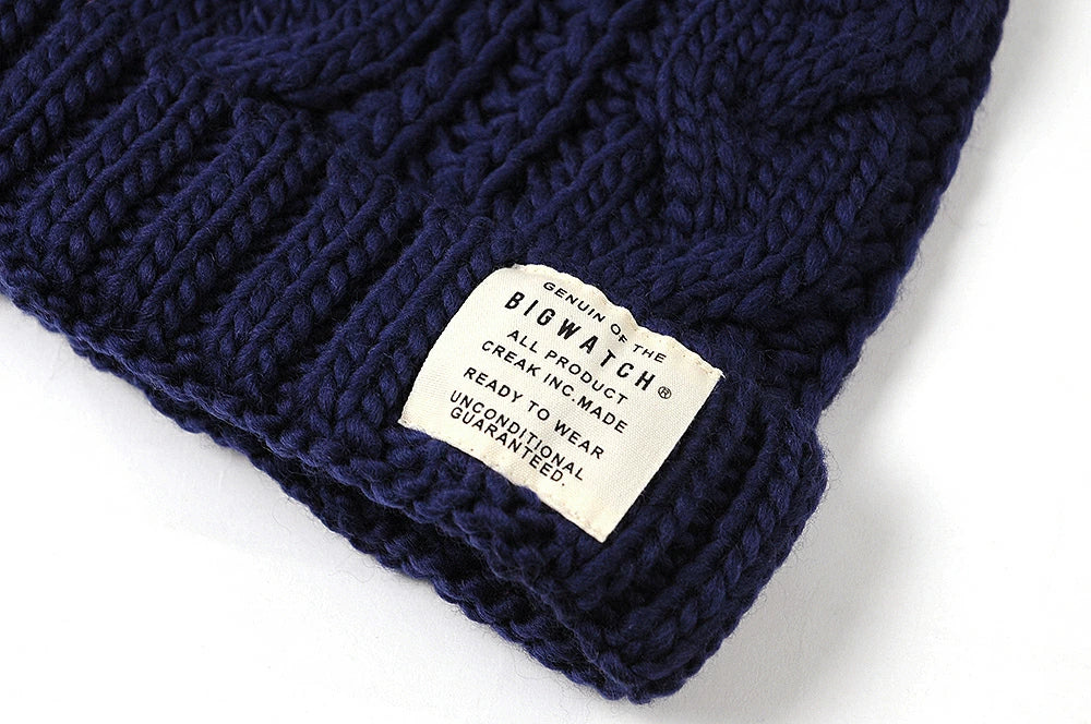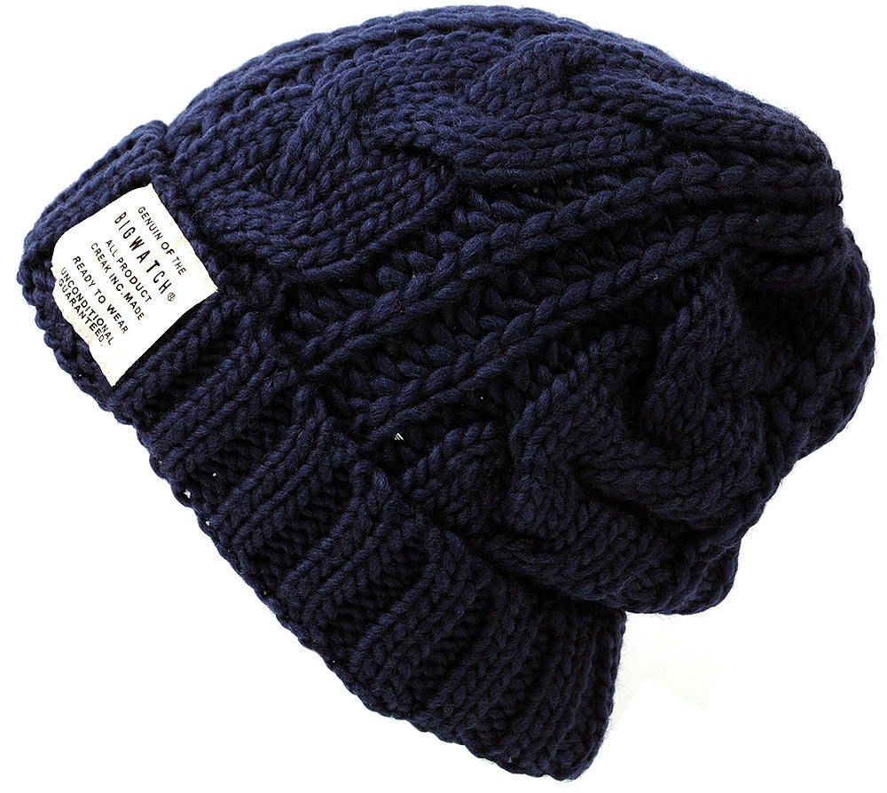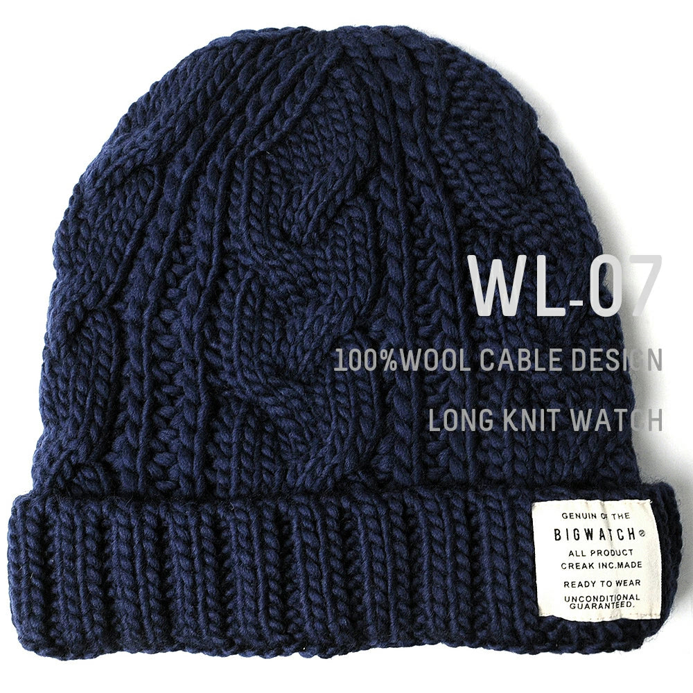 ケーブル ロングウールニットワッチ 大きいサイズ メンズ 帽子 BIGWATCH正規品 ニットキャップ ウール100% ケーブル ビーニーネイビー 紺 防寒 W-07 春 秋 冬 ビッグワッチ