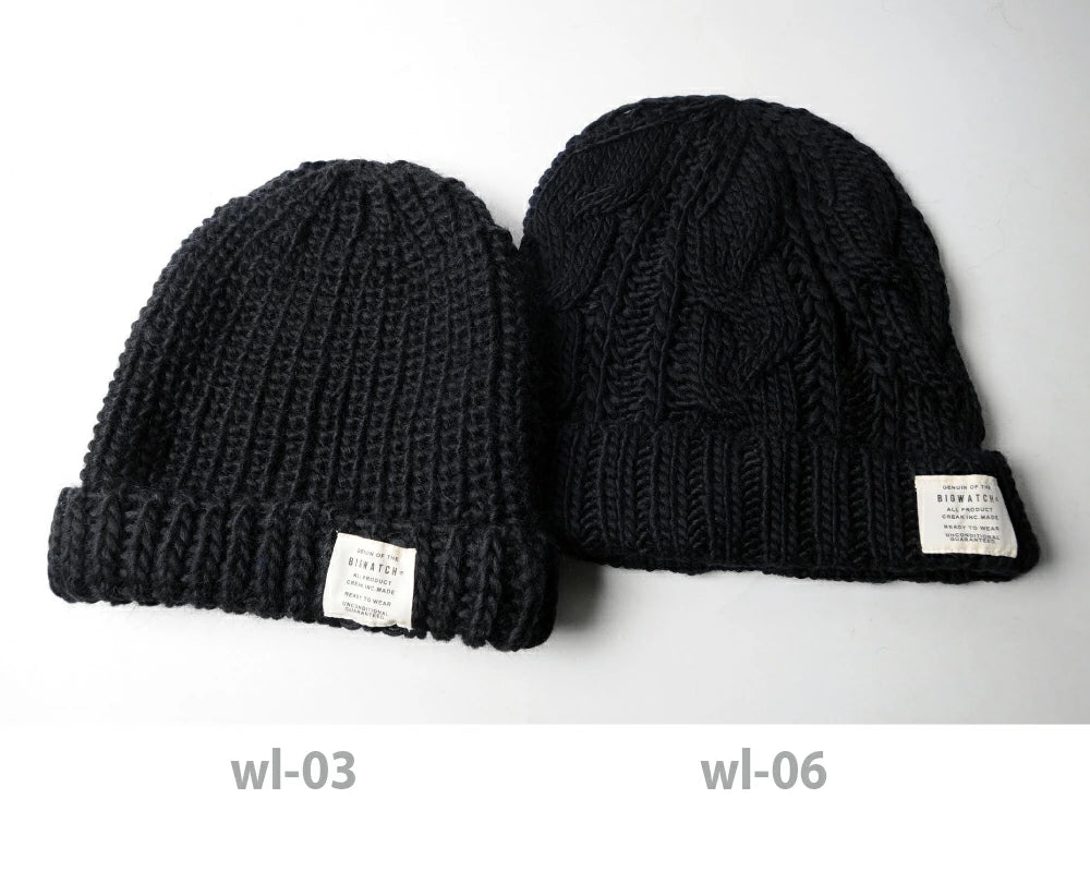 ケーブル ロングウール ニットワッチ 大きいサイズ メンズ 帽子 BIGWATCH正規品 ニットキャップ 帽子 ウール100% ケーブルニット 黒 WL-06 /ビッグワッチ