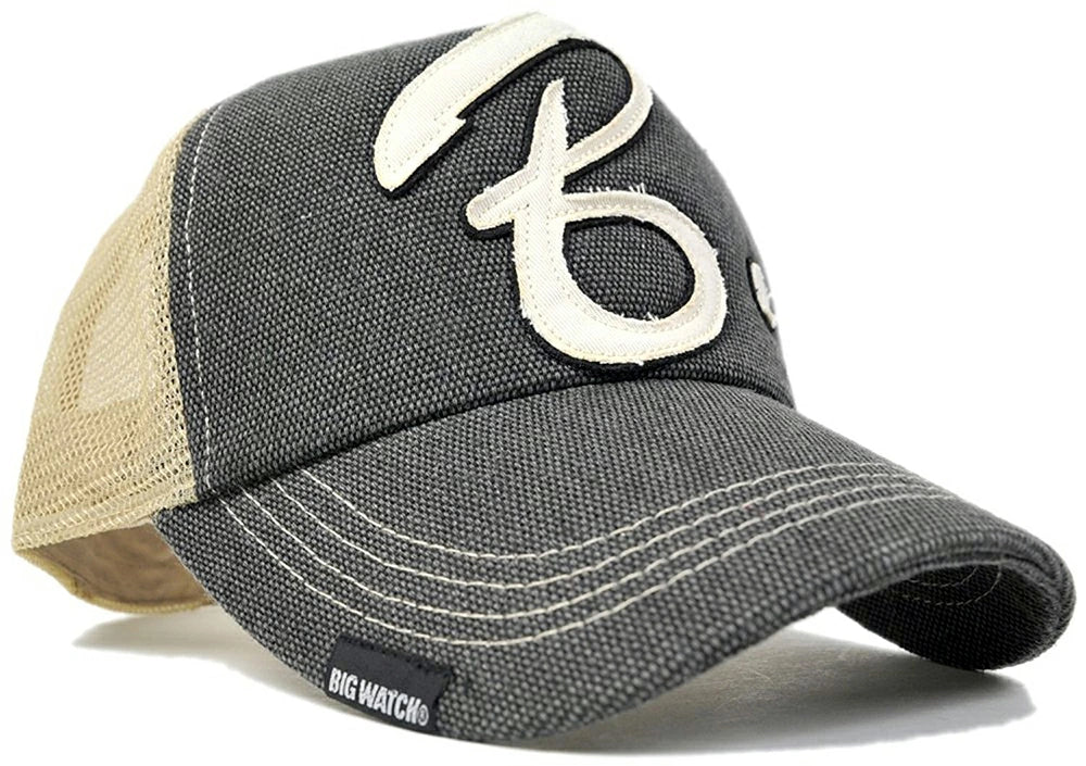 コットンメッシュキャップ BIGWATCH グレー ベージュ CPB-01M 春夏 UVケア ワッペン B