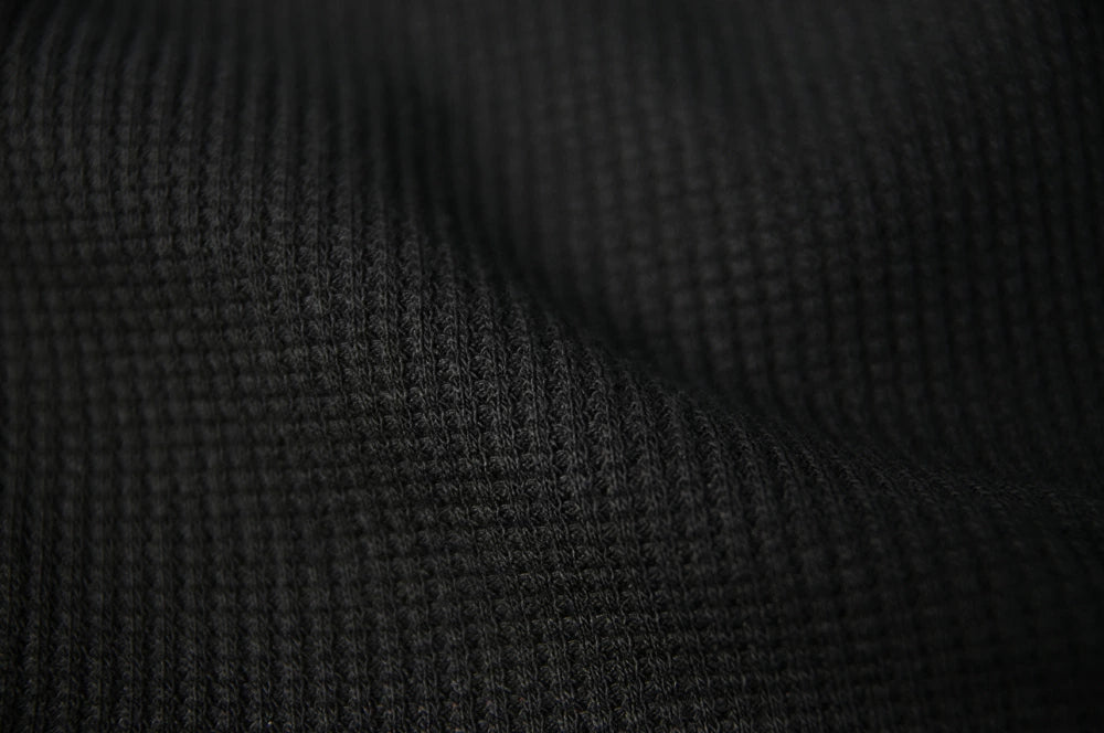 ワッフル上の小さな凹凸のあるサーマル素材で肌触りの良さが特徴。