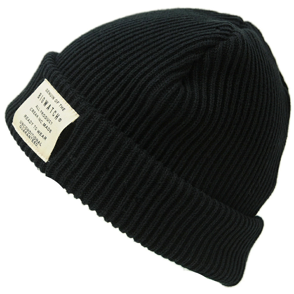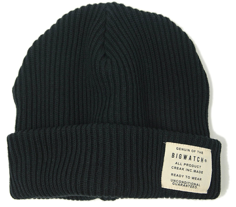 ショートリブニット ビッグワッチ ブラック 黒 浅め DP-15 リブ編み ニット帽 ニットキャップ コットン 秋冬