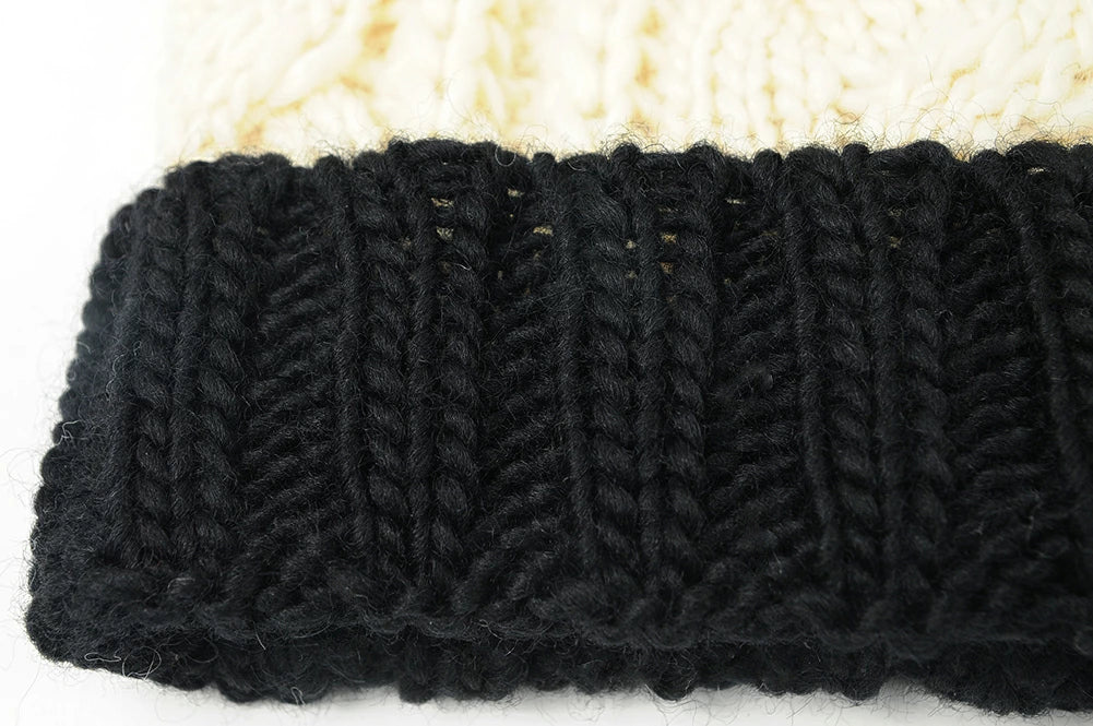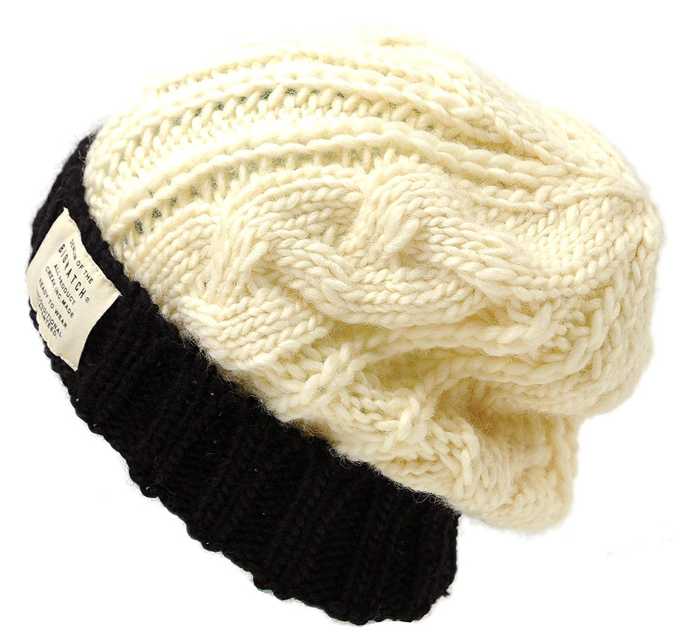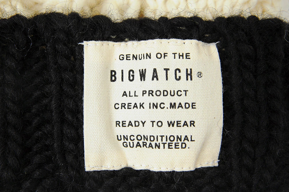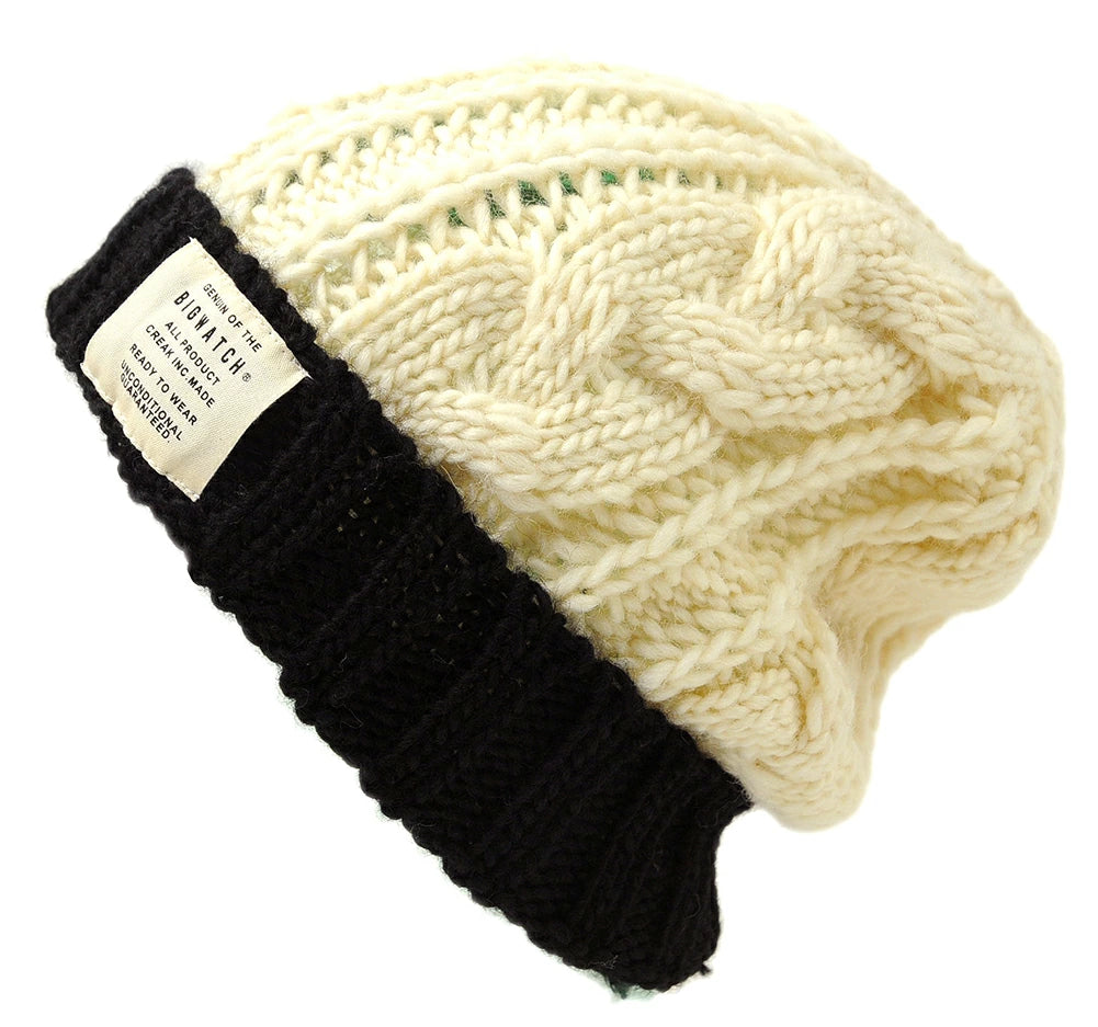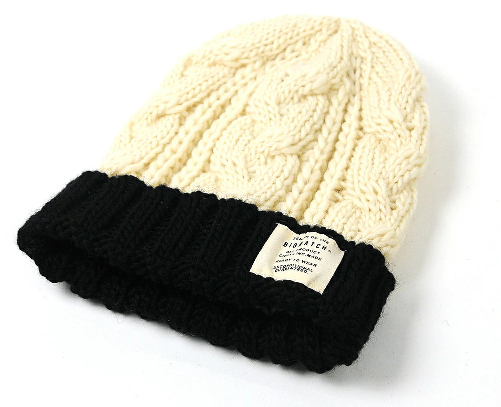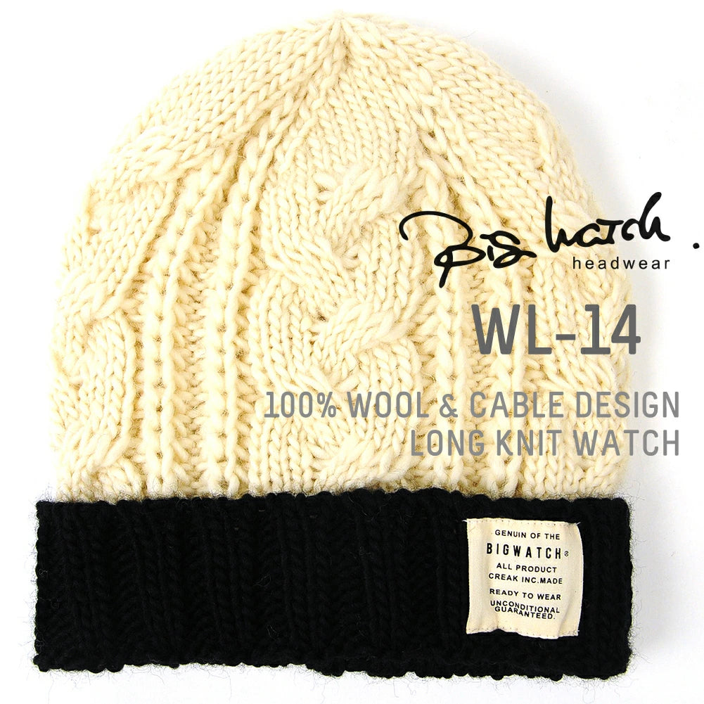 ニットキャップ ウール100% ケーブル ビーニー ホワイト/ブラック 白 黒 防寒 W-14 春 秋 冬/ビッグワッチ 大きいサイズ メンズ 帽子 BIGWATCH正規品