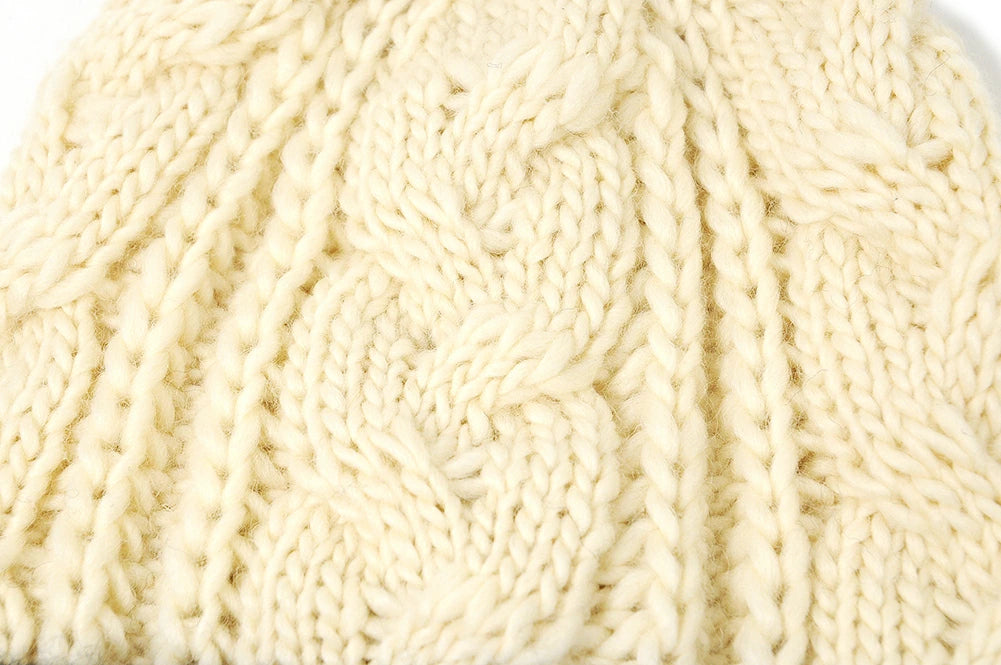 ケーブルVerです。太いゲージと共にケーブル編みによる立体感と素材感。