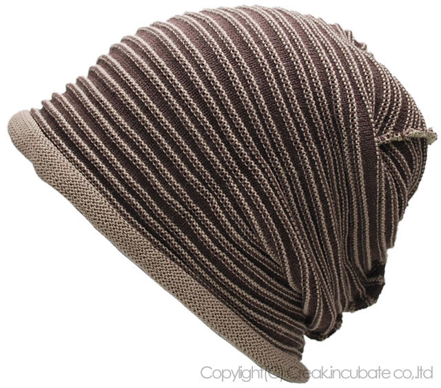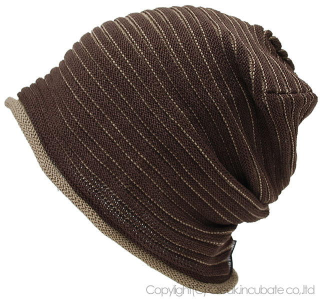 ヘンプスリムボーダーBIGWATCH(ビッグワッチ) ブラウン グレージュ ニットキャップ ニット帽 ルーズ ヘンプロール HM-09 春 秋 冬