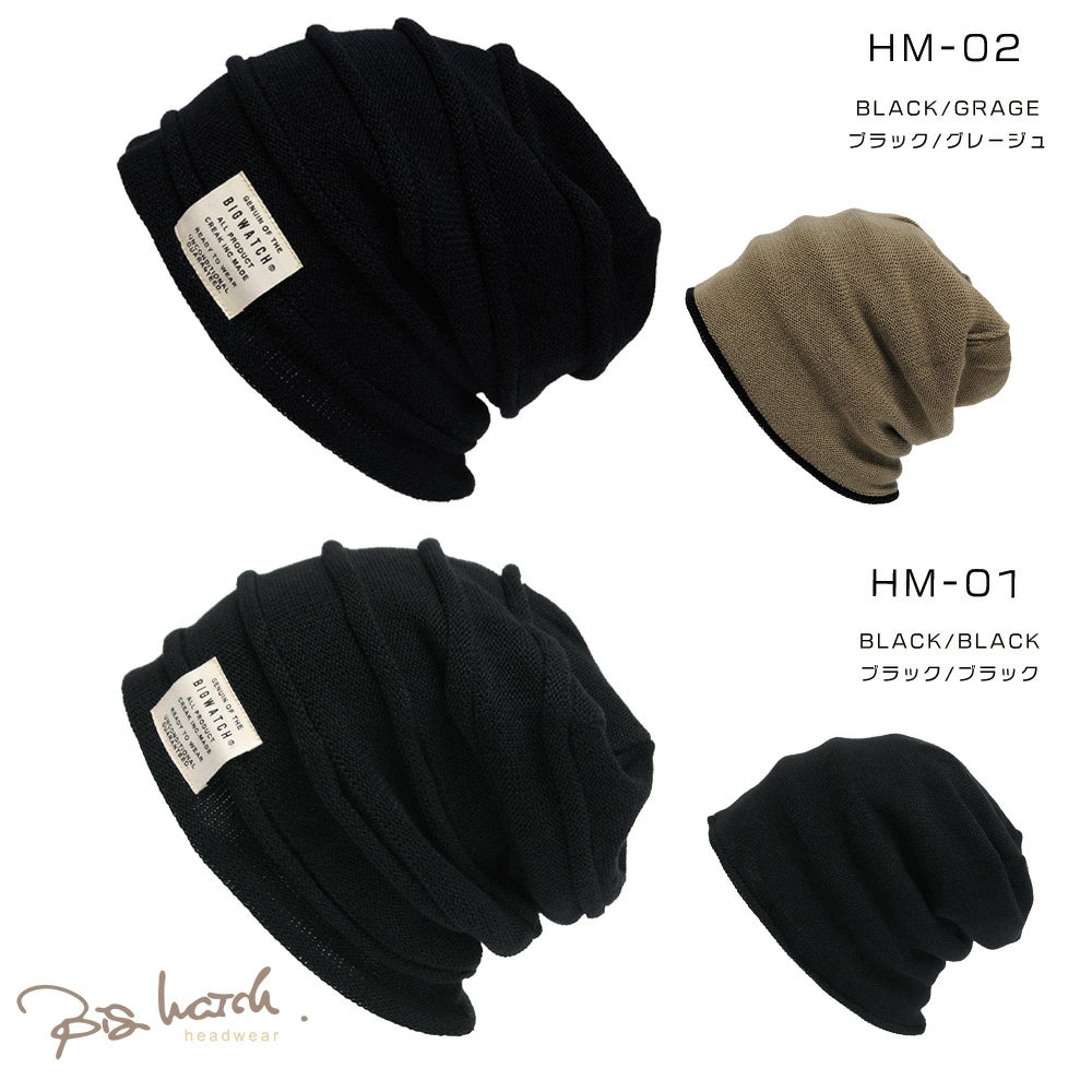 ヘンプロール リバーシブル ニットキャップ ニット帽 BIGWATCH正規品 ブラック グレージュ 黒 HM-02 春 秋 冬