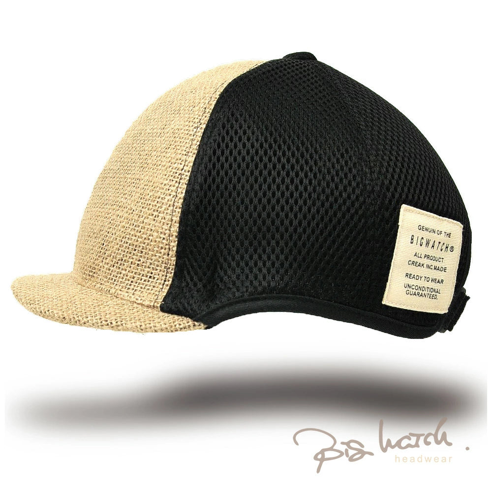 ヘンプ メッシュ ラウンド アンパイアキャップ BIGWATCH ベージュ ブラック ビッグサイズ ビッグワッチ 無地 つば 短い キャップ 春 夏 秋 UVケア