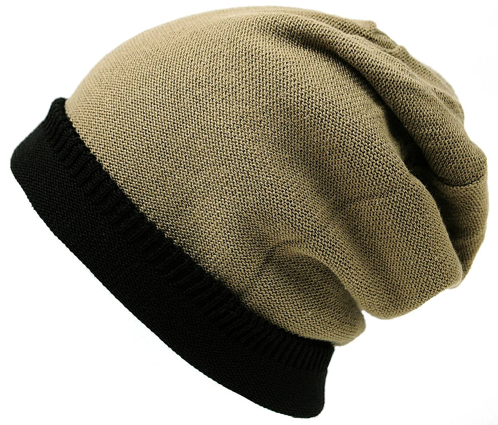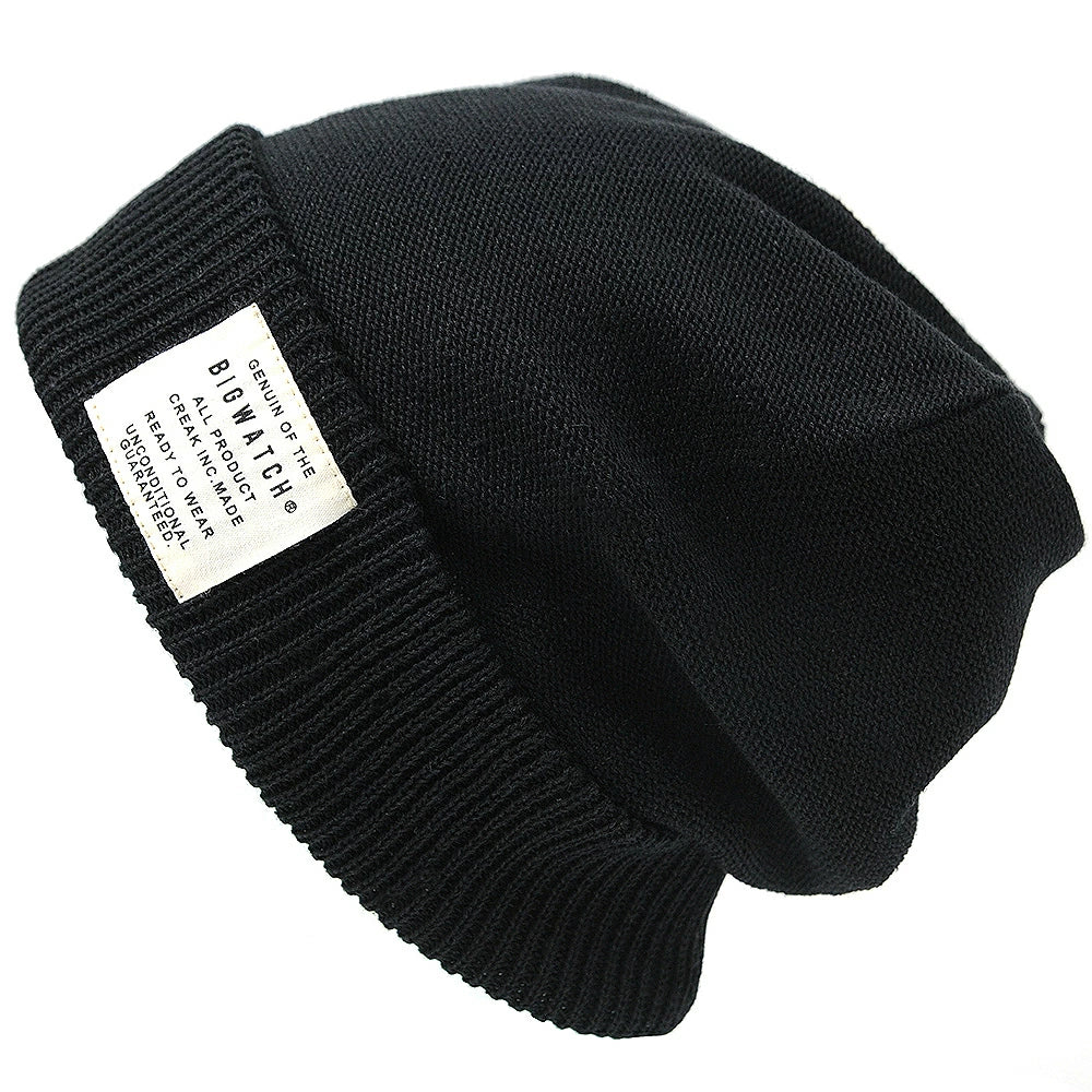 ロング ヘンプMIXリバーシブルBIGWATCH 黒ブラック グレージュ ルーズニット ニット帽 ニットキャップ サイズ HM-12 春 秋 冬