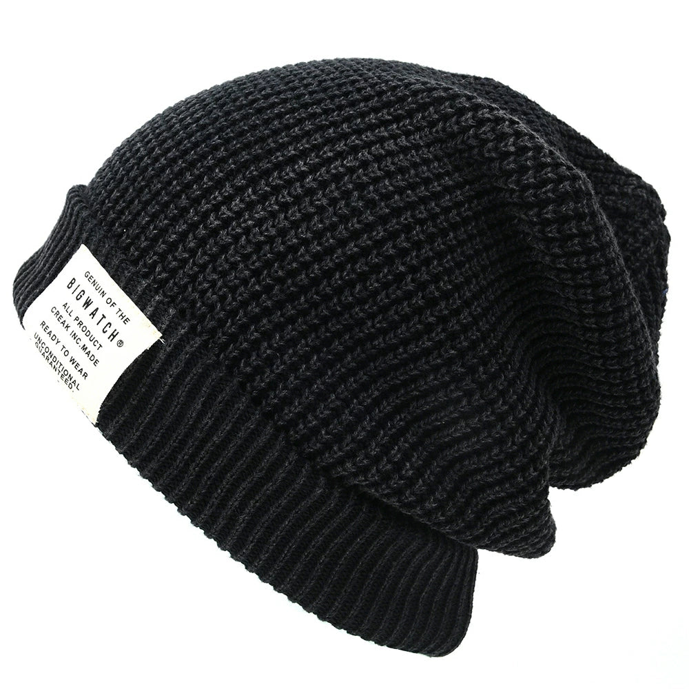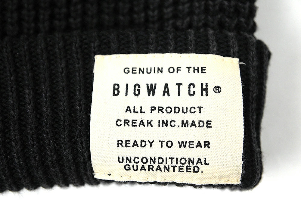 ワンウォッシュ リブ ラージスケール ニット ビッグワッチ BIGWATCH ブラック 黒 ローゲージ ニットキャップ ルーズ ニットワッチ ニット帽 ざっくり編み ウォッシュ加工 コットン100% LG-03 秋冬