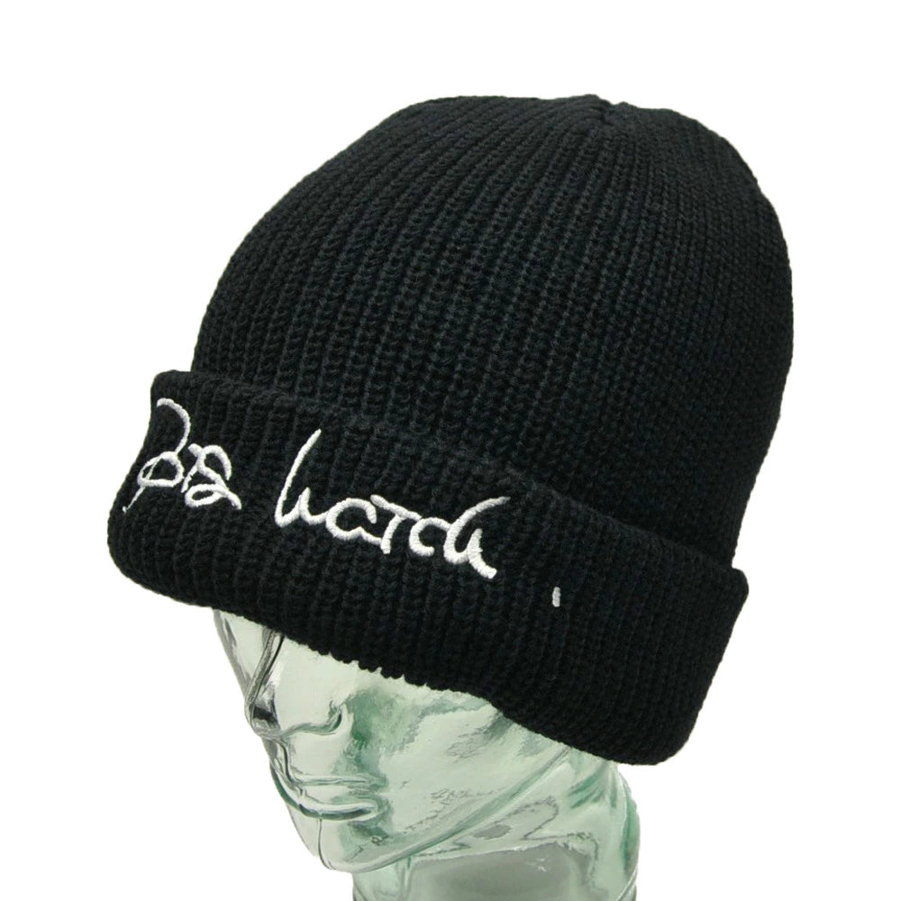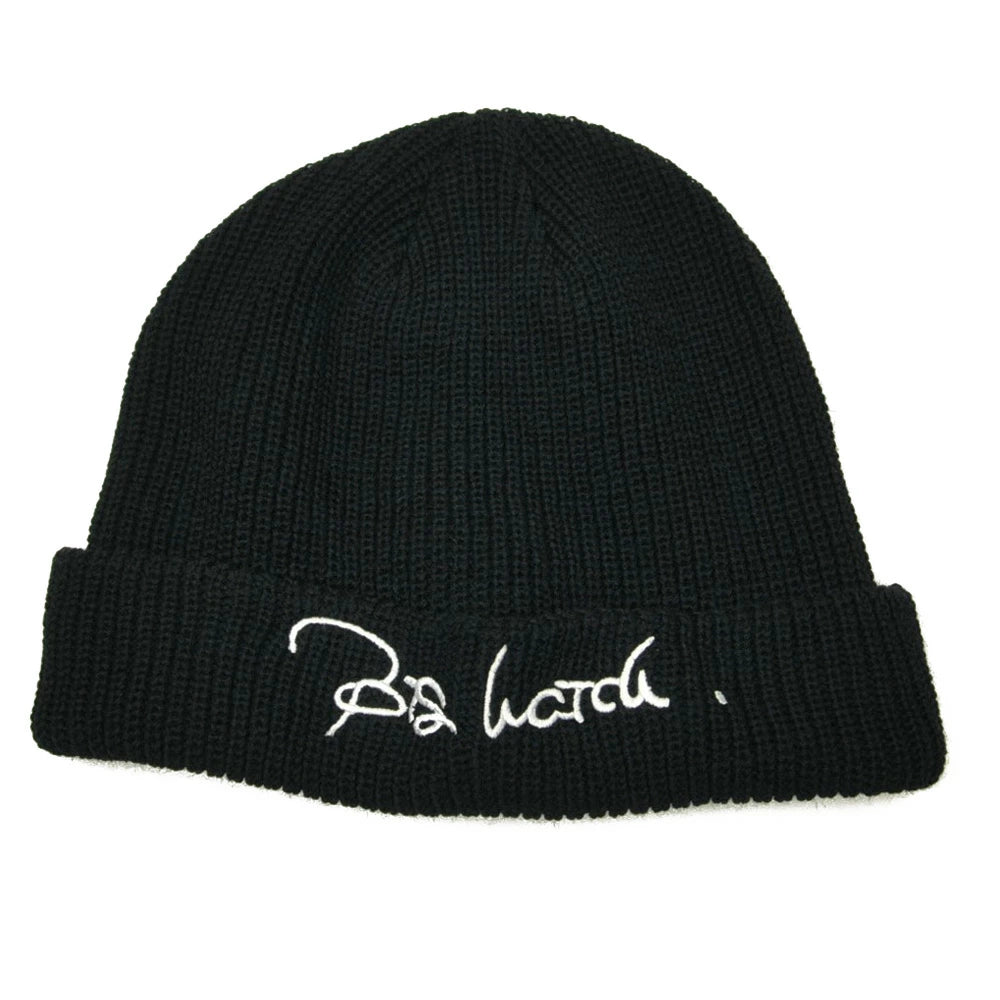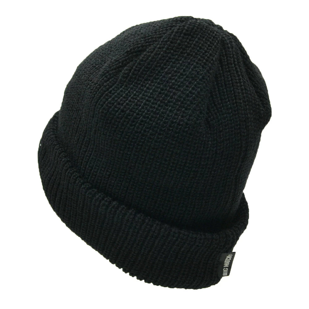 刺繍 ロゴ ニットキャップ ビッグワッチ正規品 ブラック/黒 ルーズ ニット帽 ざっくり編み 折り返し ST-07 帽子