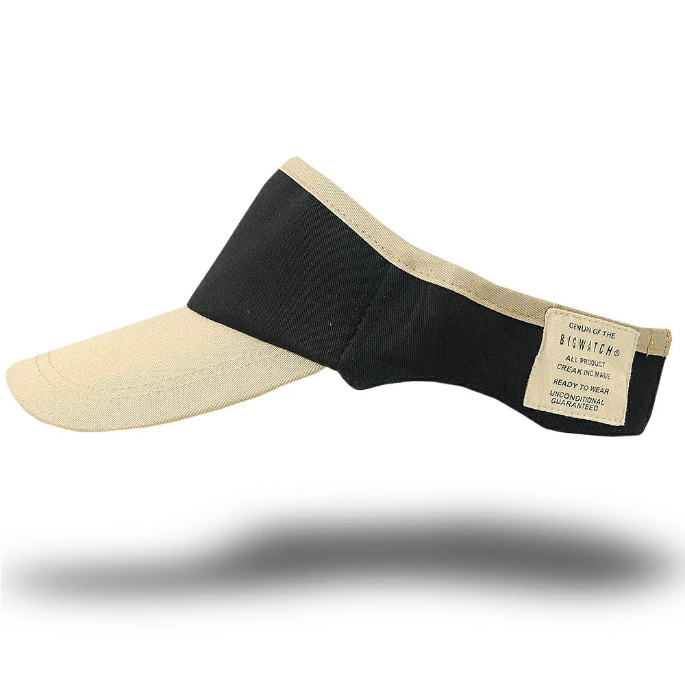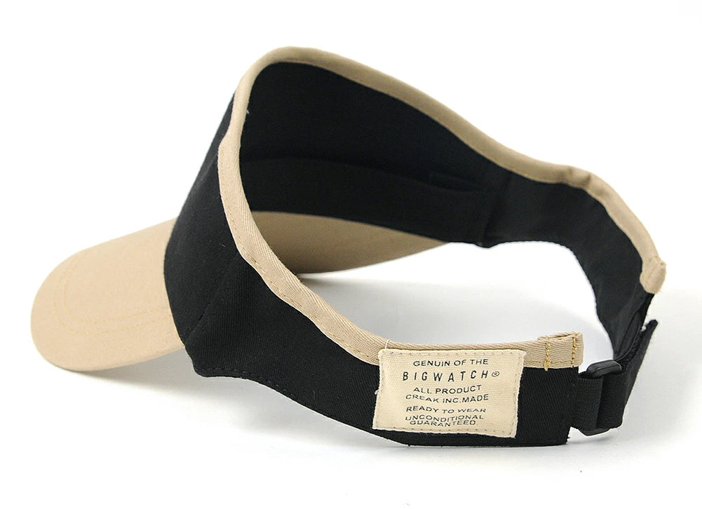 無地 ラウンド コットン サンバイザー ビッグワッチ BIGWATCH ブラック/ベージュ 黒 コットン100% バイカラー ツートン 帽子 ゴルフ スポーツ SBH-12R 春 夏 秋 UVケア