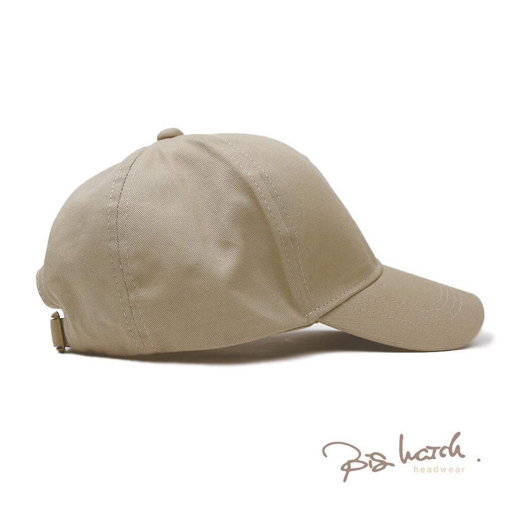 コットン100%素材使用のシンプルな6パネルデザイン。 つば長さ、頭周り、深さを全て大きめにつくっております。頭の大きい方で今までキャップが似合わなかったという方にも最適です。