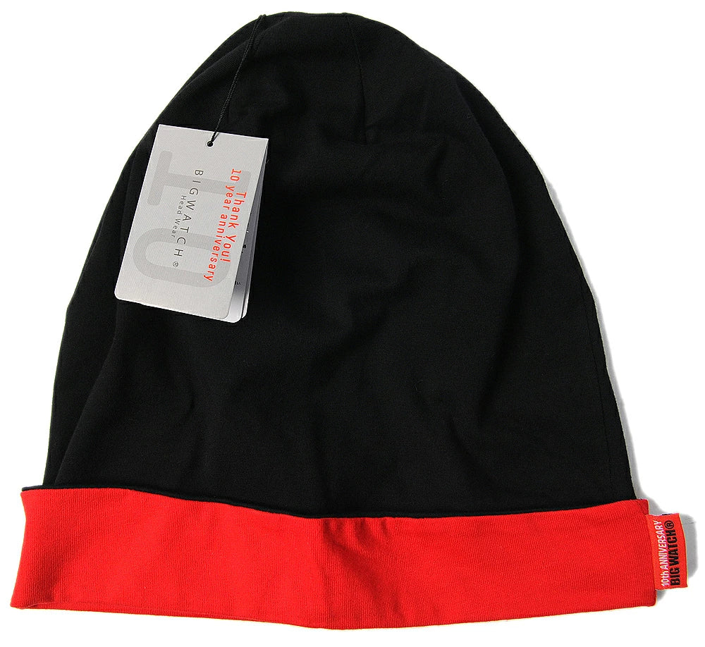 10周年記念限定 ストレッチコットンリバーシブル ロング ブラック レッド 黒 赤 ビッグワッチ ニット帽 ニットキャップ CTP-07 春 夏 秋 UVケア